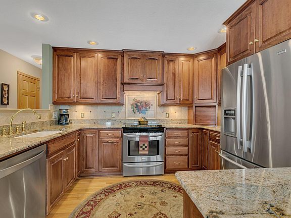 This wonderful Townhome features beautiful kitchen cabinets with granite countertops, stainless appliances, built in wine rack, hardwood floors, vaulted ceilings, nice dining room with built in china buffet , four season porch, large primary suite, main floor laundry and a three car garage. The lower level features a large family room (32'x14') with gas fireplace, lookout windows, a second bedroom, full bath and plenty of storage. There is a great front patio and maintenance free deck. This home is truly in move in ready condition and you won't be disappointed!