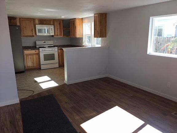 Very nice updated home. New kitchen with brand new side by side refrigerator with new tile floors, new carpet, new laminate wood floors in living room, new tile in bathroom and new paint thru-out home. On its own lot. 3 bedroom, 1 bathroom. Large fenced back yard. Very large RV Parking Area. Very close to shopping and bus transportation. Totally ready to move in and enjoy home sweet hom