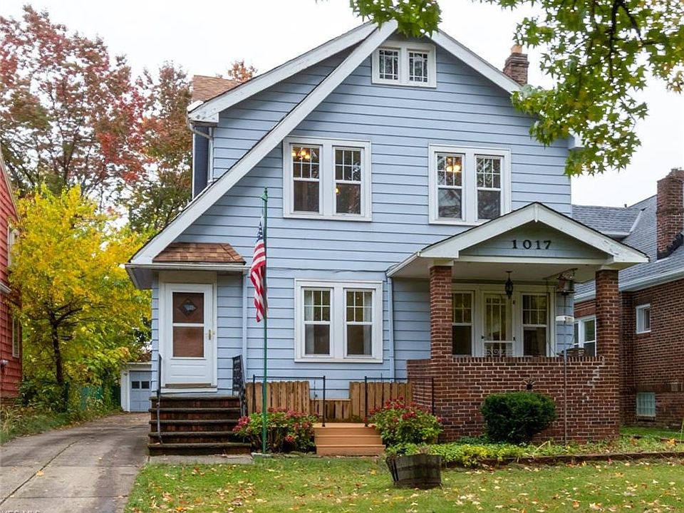 Yesteryear charm fills this 3 bedroom 1 bath colonial on tree lined Cleveland Hts. street. New vinyl siding is coming soon. The first floor boasts refinished original hardwood flooring, kitchen with ample cabinet space, a gas range, and all appliances included. The dining room features built in china cabinets with the original leaded glass, a built in desk, wine glass rack, and wine refrigerator, crown molding, large baseboards, and a sliding glass door that leads to a large deck that has been refinished. The spacious living room has a brick fireplace w electric insert, crown molding, window treatments, and door that leads to the inviting front porch w a swing. Upstairs boasts new carpeting, three bedrooms, a full bathroom w ceramic tile, door that leads to upstairs balcony, and entrance to the fourth floor attic area with flooring which is great for storage. Retreat to the lower level that features a 10 x 8 office area, another space that can be used as a panty, and an unfinished space for storage and laundry. Washer and drying included. There is a 2 car detached garage, two tiered deck that's been refinished, front porch, and more. A great place to call home!