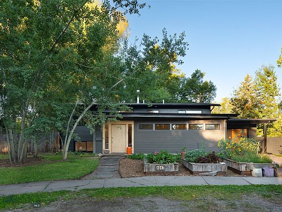 Discover the perfect blend of mid-century charm and contemporary flair at 1017 S Black, Bozeman, MT. This distinctive home, set on a sprawling .34-acre downtown lot, offers a rare combination of modern and open spaces, practical functionality for enjoyment, and peace and quiet – all without the constraints of covenants. With direct access to the Galligator Trail out the front door, you then step into a residence where classic mid-century design meets modern living. The interior features three spacious bedrooms and two well-appointed bathrooms, designed to maximize comfort and style. Sunlight streams through the abundant windows, illuminating the two open living spaces on the upper and lower levels that are perfect for relaxation, social gatherings, and multi-functional uses. The heart of this home is the open kitchen and living space with a seamless connection to the outdoors. With two expansive back decks, you’ll have multiple settings for hosting memorable gatherings or enjoying serene moments amidst the beauty of your private gardens and beneath the shade of the property’s enormous mature trees. This verdant oasis is a gardener’s dream, boasting rich, fertile soil ideal for cultivating vegetables, fruit, and an abundance of flowers. The meticulously designed flower beds add a vibrant splash of color, creating an enchanting backdrop for everyday life. Adding to the allure of this home and location is a charming and functional chicken coop, perfect for those seeking a touch of rustic charm and the pleasure of fresh, farm-to-table eggs. Remodel upgrades to the house include brand new windows upstairs, a new roof and gutters, new exterior and interior paint, and in previous years a newer kitchen, bathrooms, and the addition of an expansive mudroom with in-floor radiant heat. Whether you’re an avid entertainer or simply enjoy the tranquility of your own garden retreat while living in the heart of Bozeman, 1017 S Black offers a unique opportunity to live in harmony with nature while embracing the elegance of mid-century architecture.