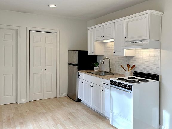 Step through the Gated Entry, and welcoming courtyard to your private Gated Porch. Open the door, and you'll discover the cozy interior featuring a Farmhouse Style kitchen with White Cabinets, Black Hardware, Subway Tile backsplash, High Arch Pull-Down Faucet, and Ash grain butcher block countertops, all illuminated by New Windows and Recessed Lighting. The space is adorned with warm Maple grain flooring, complemented by a stylish white Shiplap accent wall. Storage is a breeze with Built-in Shelving in the bathroom and a Closet Organizer. The bathroom is gleaming and spacious, offering a clear Glass shower, Pedestal Sink, and convenient Laundry Hook-Ups.