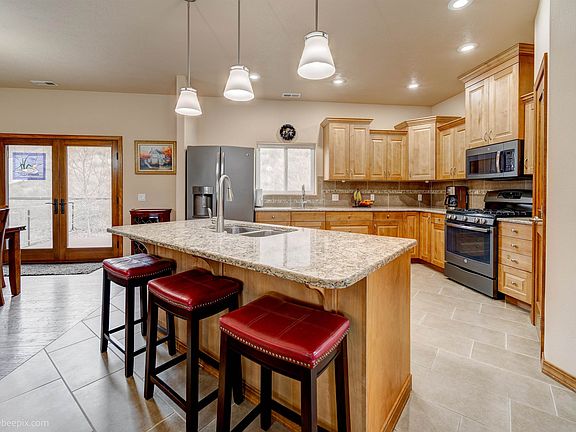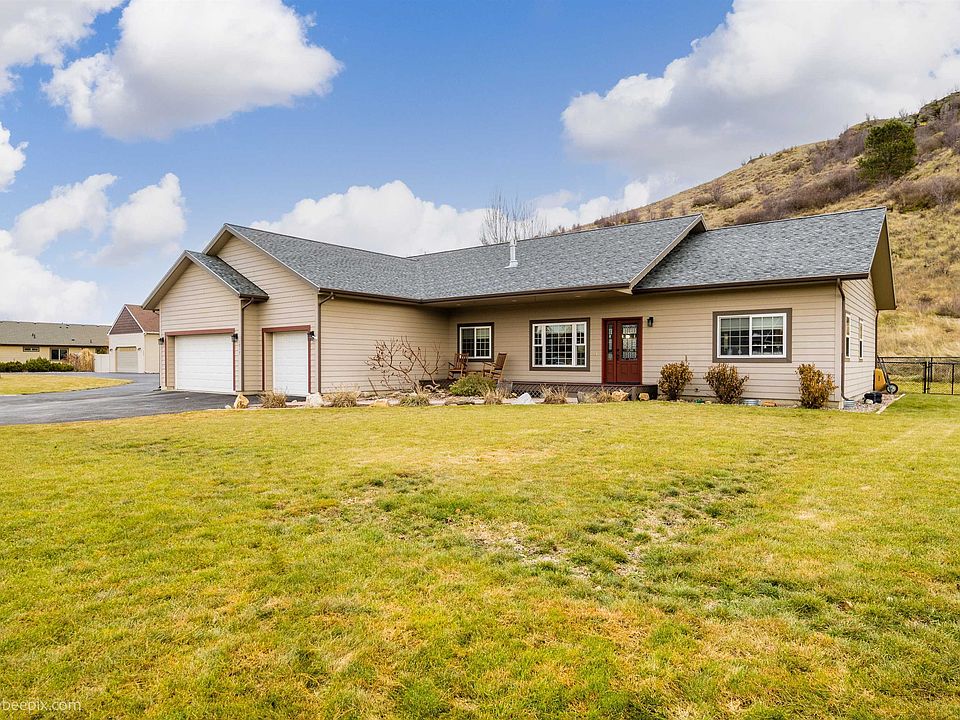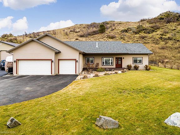 Enjoy the convenience and ease of single story living at its best. This home features an open concept floorplan with large rooms, 9ft ceilings and hardwood floors through much of the home. Upon entering one can see the beautiful kitchen with granite countertops and large island with seating. The living room also displays a beautiful gas fireplace. The dining area includes French doors to the back deck. The master bedroom with private bath, double head shower and bidet, is at one side of the home. At the other side of the house are two additional bedrooms, a full bath, laundry room and a recreation room with a sliding glass door to the back yard. This floorplan would work well for many scenarios. The large three-car garage includes attic storage with pull down stairs and some built-in storage. Additional features include a fenced back yard, RV parking and lighted four foot crawl space. Enjoy the privacy out the back of the house that includes a hillside where one can watch deer, quail, bunnies and birds.