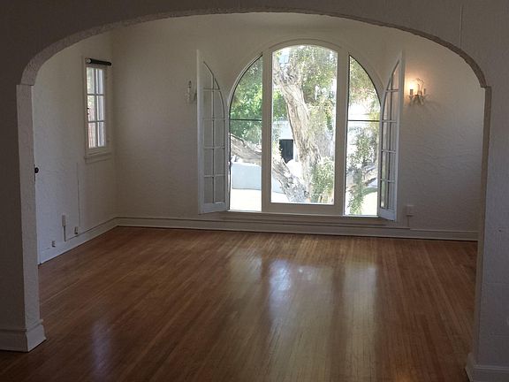 Beautiful lower unit in a quiet well maintained 1920's Spanish style fourplex building. Situated on a very pretty street among other well maintained character buildings. Filled with character and charm. Great location, not far to downtown, Larchmont Village, The Grove, Hollywood, W. Hollywood, Beverly Hills, Century City, Culver City and the Beach. Features include, newer kitchen with newer dishwasher, stove and refrigerator,ceramic floors, granite counters. Beautiful Living Room with high coved ceilings, picture L.R.window and decorative Bachelder fireplace,beautiful original hardware, gleaming hardwood floors throughout, high ceilings filled with natural light. Formal Dining Room. Two good sized bedrooms and charming bathroom. Parking for one small car in garage and a second off street parking space. Separate in unit laundry room with washer and dryer. Owner pays water and gardener
