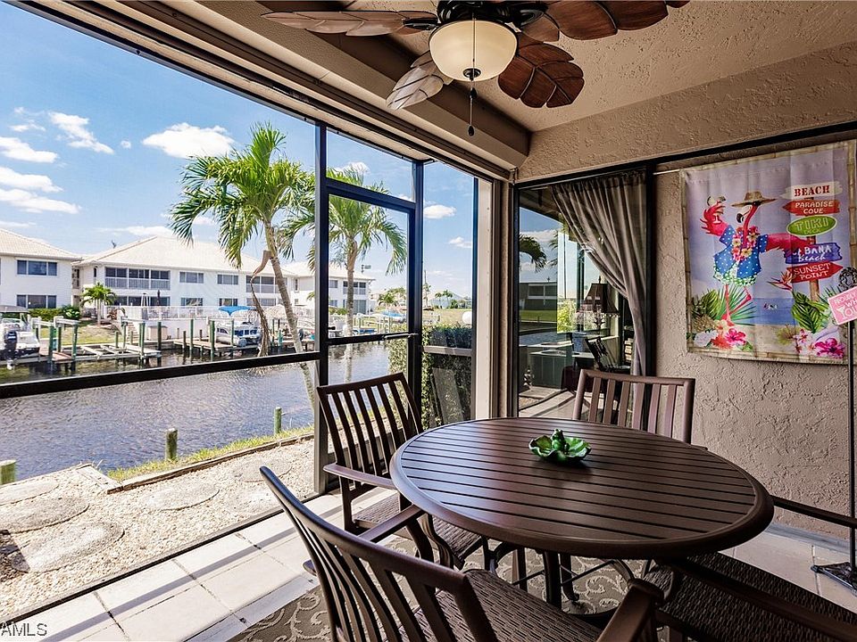 Welcome to your boater's paradise! Discover the ultimate Gulf access condo at an unbeatable price, complete with a boat dock, first come first serve, but plenty of space open. Immerse yourself in the stunning canal views and relish the charms of this first-floor end unit, where the Hurricane Impact windows and Storm Smart lanai electric roll-down shutters provide a sense of serenity and security. NO HURRICANE DAMAGE IN UNIT. This immaculately kept vacation home boasts a kitchen with rarely used appliances and like new washer and dryer. Brand new roof, carport, and storage unit. Scheduled exterior paint is on the horizon. Step outside to find extra storage right outside your door, making it convenient for all your boating gear. With so much potential, this perfectly priced condo awaits a new owner to infuse their own creative touches. Conveniently situated in the heart of Cape Coral, this prime location provides easy access to endless opportunities for boating, golfing, fishing, kayaking, paddle boarding, and more. After a day filled with adventure, indulge in the vibrant nightlife, tempting restaurants, and exciting events. Hop on your boat and set sail to all the coastal areas.