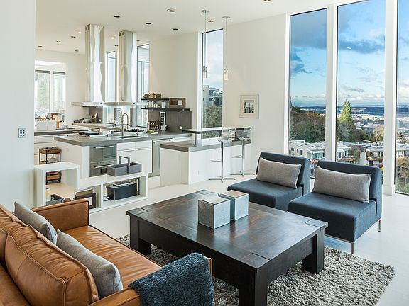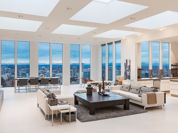 Stunning modern home in Portland Heights! Floor to ceiling windows provide panoramic views of city, mountains and river. Impeccably updated/remodeled. Features include high ceilings, open floor plan, chefs kitchen with top end appliances, 3 luxury bedroom suites with spa-like bathrooms, den with built-ins/fireplace, media/game room w/beverage cooler, over size 2 car garage/storage. Penthouse alternative for the most discerning buyer.