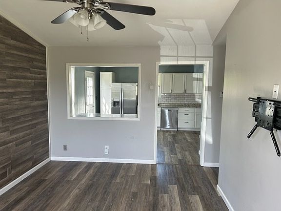 Great Starter Home or Investment Property Darling 3BR, 1 1/2 BA, Stainless Steel Appliances, Washer & Dryer, Storage Shed, Privacy fence, updated flooring. Accent wall in Living Room. Owner selling "AS IS". HVAC replaced in 2020