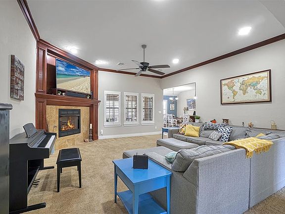 This Is A Home You Will Want To See! It Is A Beautiful 4 Bed, 3 Full Bath Home That Sits On A Large Corner Lot With 3 Car Garage. It Presents With A Spacious Entry Way & Large, Open Living Room With Lovely Custom Built Fireplace. The Kitchen Features Granite Countertops, Double Oven, Pantry, & Lots Of Cabinet Storage. Eat-In Dining Area Sits Right Off The Living Room & Kitchen That Allows For A Family Size Table. The Home Presents With An Additional Room, That Can Function As A Second Living Space, Office, Play Space, Or Formal Dining Room. Master Bedroom Is Very Spacious With Tray Ceiling & On-Suite Bathroom. Bathroom Features Large Jetted Tub, Standing Shower, Double Sinks, Walk- In Closet With Additional Built-Ins, As Well As A Separate/Private Toilet Area. The First Guest Room Is Adjacent To Master & Showcases A Large Walk-In Closet & Private Bathroom Access To Second Bathroom That Features A Single Sink & Private Tub/Shower Combo & Toilet Area. This Bathroom, Also Functions As The Guest Bathroom. The Remaining Two Rooms Are Off The Kitchen. They Both Give Ample Space & Share A Jack N’ Jill Bath With Tub/Shower Combo & Double Sink. The Laundry Room Has Built-In Cabinetry & A Second Refrigerator Hook Up. The Home Showcases An Enclosed Patio, That Can Be Utilized For Just About Any Purpose. The Exterior Presents With Great Amount Of Driveway Space With Basketball Goal & A Backyard With Covered Patio Area & Wood Fence. Additional Features Include; Garage Floor Cellar, Tall Ceilings Throughout, Crown Molding, Plantation Shutters, & Sprinkler System. Come See It Today!