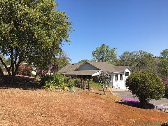 Adorable 1920's home in Angels Camp on 1/2 acre lot. This little charmer is a two bedroom, two bath with 1200 square feet of living area. The larger bathroom has an attached bathroom that also can be accessed from the laundry/mud room. Forced air gas and wood stove for heat and cooling is a swamp cooler that has been ducked to provide cool air throughout the house. The interior features of the home are dated and will need some updating but the home in solid. Small deck off back of house with backyard access and the mature landscaping is part of the charm this house offers. There is no parking access in front of the house, the driveway to the front of the house is only ingress and egress usage, you can not park outside of the marked property line. The parking is below under the covered carport area. The lower gravel parking access is also an ingress and egress access with parking only allowed under the covered carport area.