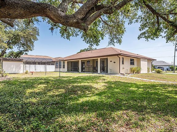 BEAUTIFULLY updated 3 bed, 2 1/2 bath, 2+ car garage located in the HEART of Port Charlotte on a DOUBLE LOT, situated in a park-like setting on almost 1/2 acre. NOT in a FLOOD ZONE. VAULTED CEILINGS, SLIDING GLASS DOORS, and TRANSOM WINDOWS enhance the BRIGHT SPACIOUS FLOOR PLAN that also offers a SECLUDED OVER-SIZED MASTER SUITE, with a sitting area that opens to the lanai. High end PORCELAIN WOOD TILE accents the main living areas and bathrooms with NEWLY INSTALLED CARPETING in the bedrooms. The kitchen shines with CORIAN COUNTERS, SUBWAY TILE BACKSPLASH, and NEW S.S. APPLIANCES. The 1/2 bath is conveniently located and accessed from the lanai. The second lot includes an 850 square foot Steel Master workshop, with a loft, tastefully nestled into the trees, offering tons of additional space for hobbies, storage, or parking. BRING THE BOATS and RV! This quiet and friendly neighborhood is ideally centered between I-75 and US-41, just off Peachland; minutes from shopping, restaurants, and entertainment. Shows like a model! THIS IS A MUST SEE!!