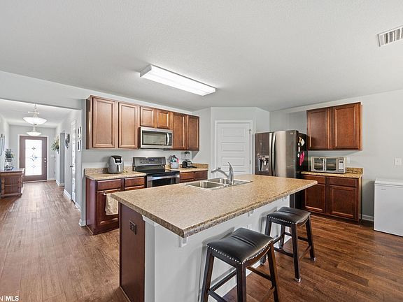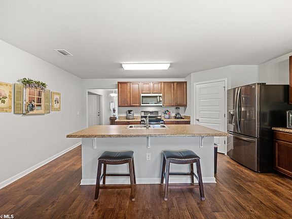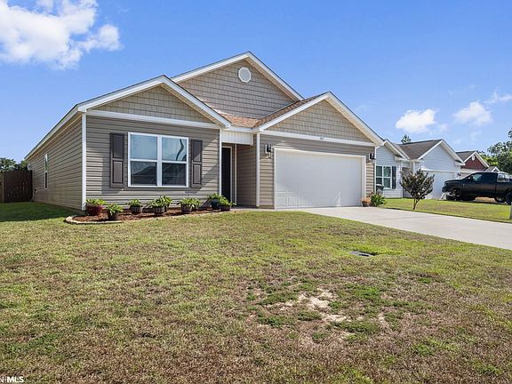 Welcome to this charming house in Foley!!! Location, location, location, this home is minutes to shopping, restaurants, OWA and the gulf coast beaches. This house is turn-key ready for its new family! As you walk into the home you are welcomed by an open foyer that invites you to the open Kitchen and Living Room. This is a split floorplan, with 4 bedrooms and 2 bathrooms and great natural lighting. As you exit to the backyard, you encounter a peaceful orchard, with a custom built shed and a amazing view of a farm field. Roof is only 2 years old and this home comes with a Gold Certification!!! Listing company makes no representation as to accuracy of square footage; buyer to verify.