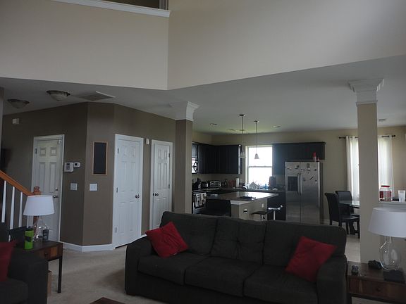 This southern charmer with double front porch awaits you. Enter the foyer and find a formal dining room on your right. You will love the grand family room with its dramatic, 2-story ceilings, giving it a bright feel. Open kitchen is well appointed with an abundance of cabinet and counter space, a large island, and stainless steel appliances. Next to the kitchen is the eat-in breakfast area. Upstairs, you will find the master suite with its own bath and oversize walk-in closet. Two secondary bedrooms share a hall bath. The loft provides extra space and can be used as an office, game or media room. Off the loft is a door leading out to the 2nd floor deck. Fenced in yard provides privacy. Elementary and middle schools are within walking distance. Community amenities include pool & play park.
