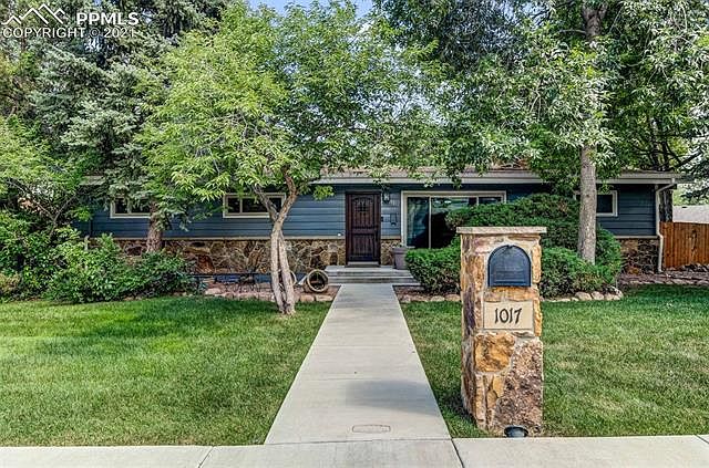 This one-of-a-kind, ranch-style home sits on an enormous corner lot, located in the heart of Lower Skyway & School District 12. The house is directly across the street from "The Little Dipper," neighborhood swimming pool, & walking distance to Skyway Elementary School. The entire property is full of custom upgrades inside & out! The lot offers a perfect design for those who enjoy being outside & entertaining with a large outdoor living area, built-in gas fire-pit, built-in kitchen with gas grill & granite counter-tops, stamped concrete, large covered deck with hot tub, outdoor tv with tv connection ports & surround sound, 2 large storage sheds, oversized 2-car detached garage, new backyard fence, freshly poured sidewalk & curb, auto sprinkler system, healthy grass & mature trees all around. As you approach the home, youll immediately notice the exterior stone accents (Colorado Native Moss Rock), custom-made speakeasy front door, refinished hardwood floors & stairs, fully remodeled kitchen with granite countertops & SS appliances, remodeled bathrooms, custom bookcases with secret compartments, wood shutters, beautiful wood-burning fireplaces, wine bar, reflective acrylic floors in basement, upgraded windows, new light fixtures & SO MUCH MORE. Do not miss out on this one!