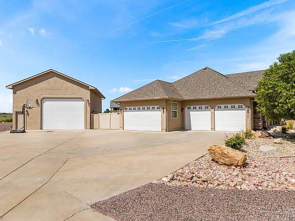 Location, location, location.... just minutes from Lake Pueblo and with the 8+ car garage you have plenty of room to store all those TOYS! Home sets on a corner lot giving you views of the mountains from Pikes Peak relaxing on the back patio. This home is sure to check off all your boxes – from the moment you enter the large foyer you feel at home. To your right you have bedroom/office and to the left a large main level laundry room, then to the kitchen, dining and family area. It has a large main level living room and master bedroom with an adjoining office or work-out room. This home has some amazing walk-in closets making it easy to be organized. As you follow the staircase you will enter the very large recreation room or additional family room that boast 23'x18', then to large bar and 26'x 14' entertaining area and the best part is all 3 bedrooms have adjacent bathrooms and to top it off there is another laundry room! Then to top it off you have an attached 4 car garage with epoxy flooring then a super oversized detached 4 car garage ready and able to store all those toys. You are just minutes from Lake Pueblo to enjoy all the lake and park have to offer. Take a look you won't want to miss this one because it won't last long.