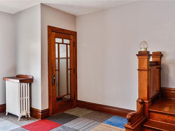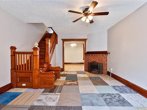 This gracious row home is freshly painted, clean as a whistle & move in ready! Enter under a covered porch thru the new storm & front door into a classic vestibule w/ interior door. So much character awaits you...from original woodwork, stained glass transom window, high ceilings, to an amazing corner fireplace! Imagine relaxing in your huge LR w/ a cozy fire! LR flows into the large DR & then kitchen. Kitchen has wood cabinets, gas cooking & a SS refrigerator. Head up the Grand Staircase to 5 bedrooms. The sun-drenched master is spacious w/ 2 closets, 2 more nice sized BR's on 2nd FL. The Full Bath has updated floors & fixtures & beautiful tile tub/shower. Then to the 3rd FL for 2 more nice sized BR's. 3rd FL has all new windows. Exit to your back patio & private backyard w/garden beds ready for spring planting! Brand new carpet or easily pull it up to refinish the original hardwoods. Gas heat & hot water. Brand new chimney flu. Detached 1 car garage for off street parking. Clear CO!