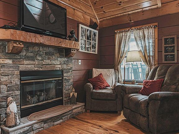 Here is your opportunity to own a beautiful Smoky Mountain log cabin! This 2 bedroom/2 bathroom cabin is located in a cabin resort just across the street from Soaky Mountain Water Park and less than a mile from the new Publix Shopping center. It is an ideal location for rental potential! Step onto the wrap around porch, take a seat in a rocking chair, and enjoy the sounds of nature. Then, head inside the front door directly into the main living space. Here you will find vaulted ceilings and a gorgeous gas log fireplace (with new gas logs inside.) Walk over to the kitchen which includes everything you need to entertain, including a wooden island with bar stools for easy dining. The main floor bedroom and bathroom is just around the corner with direct access to the covered porch from this room. Walk upstairs to find the second bedroom and private second bathroom which has access to a private balcony with seating. This bedroom has a new mattress and bedding as of November. Picture yourself waking up and enjoying your morning coffee on your own private balcony! This cabin has been used as a vacation home, and it has no rental history. Rental projection showed up to $46,000 per year in the next three years. The owners have taken very good care of their cabin, including yearly carpenter bee treatments/prevention, yearly plumbing and electrical inspections, HVAC system that is only 2 years old, new moisture barrier and sump pump, and having the upper balcony redone and stained since they have owned it. ADJACENT LOT AVAILABLE for an additional $40K. All information deemed reliable, buyer to verify.
