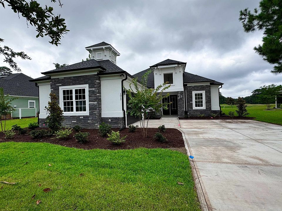 Nestled within the prestigious golf course community of Wild Wing Plantation, this home sets a new standard in luxurious living with lots of privacy. A host of high-end finishes and upgrades are on show throughout the sprawling 4beds, 3baths, 2 car garage! Lot backs up to the golf course and located on a cul-de-sac. Even before stepping inside, you will fall in love with this remarkable residence thanks to the private backyard, charming curb appeal and lush established gardens. Tall 10-footceilings soar overhead throughout while 12-foot feature tray ceilings, crown molding, LVP flooring and an abundance of natural light ensure this is an awe-inspiring interior. The living areas are generous and open-plan encouraging an easy flow from the great room through to the dining and kitchen. You will love to gather in front of the cozy fireplace on cool winter nights while any avid cook will adore the modern kitchen with upgraded granite, a gas cook top, a walk-in pantry and wood soft-close cabinets. From here, you can admire the peaceful outlook over the backyard. Golf course view add a picturesque appeal while also ensuring privacy for the lucky new owners. Two bedrooms have en-suites including the master with a stunning tray ceiling, a walk-in closet, a double vanity, garden tub and a tiled shower. The remaining bedrooms all have built-in closets with wood shelves plus there’s a laundry room, a third full bathroom and a two-car attached garage. House will be upgraded to stucco instead of siding. You will live just 10 minutes from the beach and only moments from grocery stores, hospitals and schools. Wild Wing Plantation is a natural gas community with residents enjoying access to a tennis court and a pool. Picture is for representation only. Completion date is May 2024.