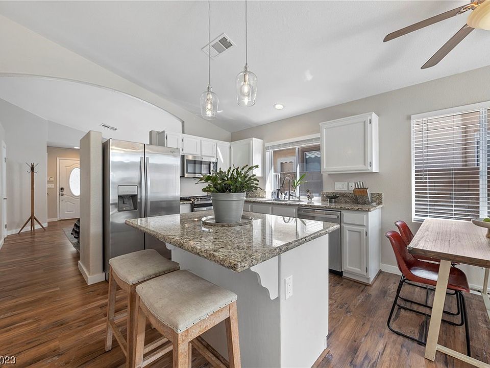 - Description: Granite Countertops,Island,Man Made Woodor Laminate Flooring,Pantry,Stainless Steel Appliances