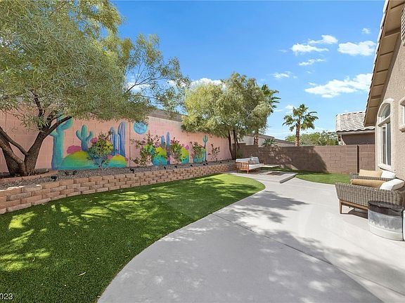 REMODELED, LOCATION, SCHOOLS … This home has it all! Located in the desirable Summerlin Masterplan, this beauty has been remodeled with all the latest and greatest features creating a warm inviting sanctuary. INTERIOR REMODEL INCLUDES: Complete primary and secondary bathrooms with double vanities and tiled surrounds, Primary bedroom barn door to bathroom, All doors and hardware, Vinyl plank wood floors throughout, Modern fireplace, Trim at baseboards and around doors, Nest thermostat and doorbell, GE microwave with slid-in oven and dishwasher, Single compartment kitchen sink, all light switches and outlets, Blinds, Paint. EXTERIOR REMODEL INCLUDES: Fresh paint, Landscaping with lighting, Mature trees and shrubs, Astroturf in backyard, Concrete walks with patio area, Raised planters, Colorful mural on block wall. This home is ULTRA CLEAN and Turn-Key!! Note: refrigerator, washer & dryer and TV's stay with the home.