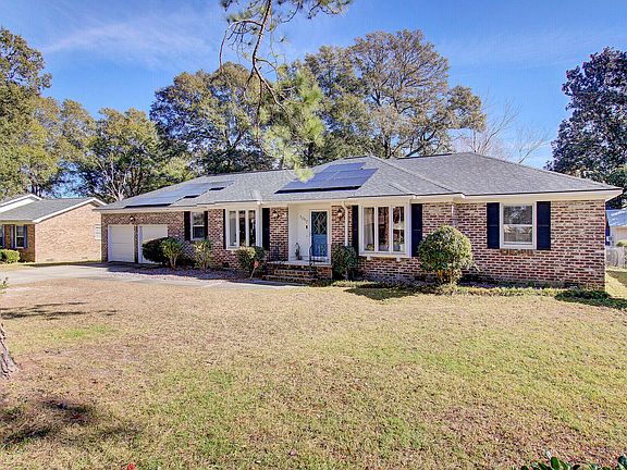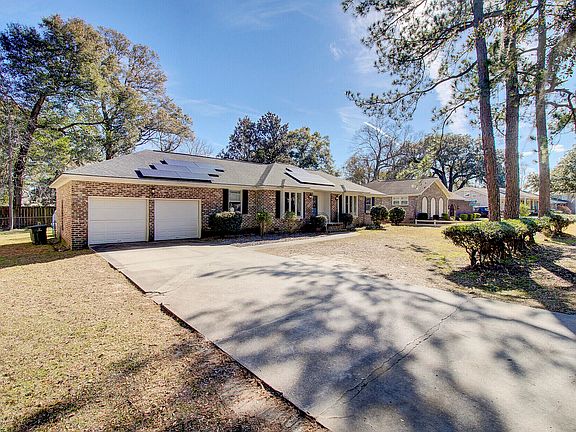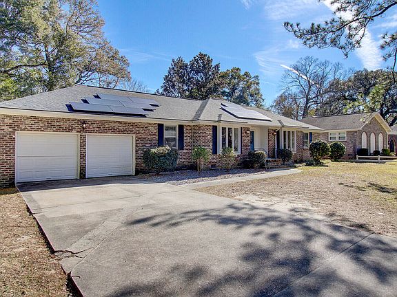 Situated among the graceful, grand oaks of Dominion Hills with a branch of the Cooper River nearby, this stately brick home offers easy access to all of Charleston's amenities, top schools, and a short commute to work in any direction. In 2017 this ranch-style home was updated including opening the floor plan and vaulting the living room ceiling, renovating bathrooms with Calacatta quartz countertops and shiplap accents, and adding a new roof and lighting throughout the home. Since then the current owners added a custom covered patio and fire-pit for quality time with family and friends while watching the kids play football or tag in the spacious backyard.This classic layout offers easy living for those who wish to avoid stairs and the open family room is large enough for a significant gathering and accented by a painted brick fireplace and dark, wooden beam. In the kitchen you'll find granite countertops with subway tile backsplash and stainless steel appliances and the two car garage offers ample room for storage. Above the garage is another finished room, ideal for an office or fourth bedroom. On your weekends take time to go fresh or salwater fishing from Bushy Park Boat Landing or explore, hike or bike Marrington Plantation - 1,600 acres of woodlands, marsh and trails just 10 minutes away. The shops at Tanner Plantation also offer a variety of restaurants, Lowe's grocery, nail salon, barber, dentist and more. Don't wait to see this quality home. Book your showing today.