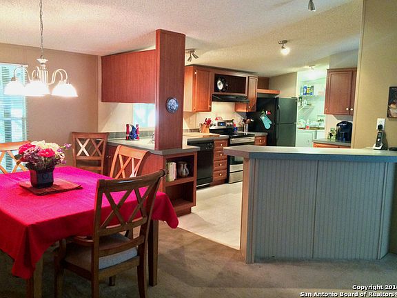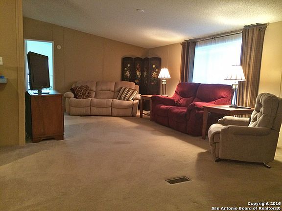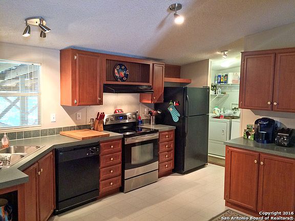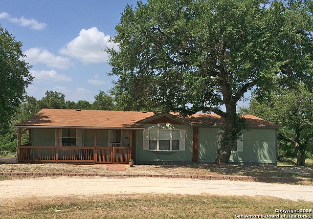 Spacious 3/2 manufactured home across the street from the entrance to the Club at Rebecca Creek. Great open floor plan with split bedrooms for privacy. Large master with walk-in closet and bath with garden tub and separate shower. Enjoy the great covered entry porch and huge covered back deck that's made for entertaining. Tons of storage under the deck and in the attached shed. Bring your RV because the carport includes hookups for water and electric! All Kitchen appliances and window coverings included