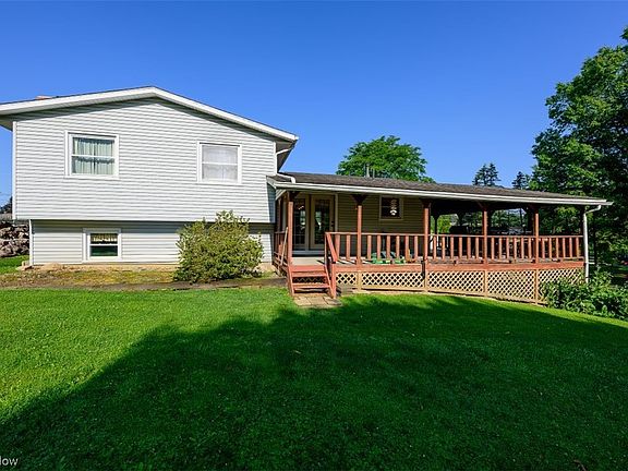Enjoy country living in this Hartville split level with 1578 sqft, 3 bedrooms, 2 full bathrooms on a private .46 acre lot. The open living and dining rooms lead to a spacious fully applianced kitchen with SubZero refrigerator. Upstairs you'll find 3 bedrooms and an updated full bath. The lower level offers a family room with built-in cabinets and wood burner plus office/bonus room/4th bedroom and full bath. The basement offers plenty of storage and laundry room. You'll love spending evenings on the wrap around covered deck overlooking a serene landscape. So many updates have been done: Roof approx. 2011; water softener 2015; hot water tank & well pump 2017; chimney rebuild 2019; main bath shower tile 2019; dishwasher & new septic system 2020; central air conditioning 2022; flooring in lower level bath & new sump pump 2023. Don't miss this opportunity!