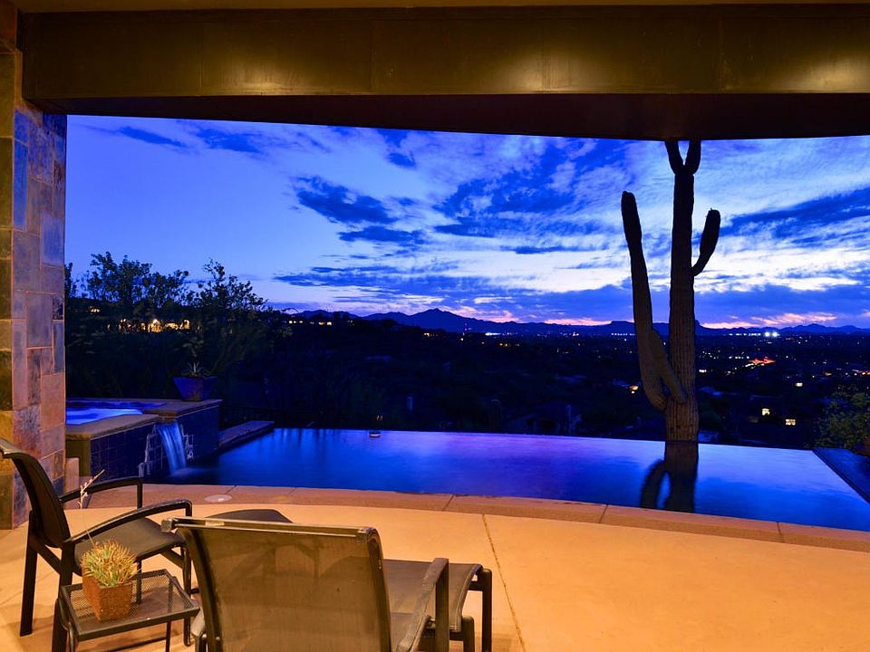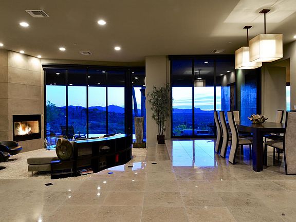 Breathtaking Top of the World views of Oro Valley, surrounding mountain ranges and up close views of the majestic Catalina Mountains. Striking contemporary designed by Alan Roberts to showcase exceptional views, twinkling lights and mountain vistas. Elevated setting in guard-gated La Reserve offers a private sanctuary for seasonal or annual lifestyle. Split layout with all ensuite bedrooms and stylish interior with wide hallways and room for art. Fabulous chef's kitchen with Asko, Wolf & Sub-Zero appliances. Sleek design with pivoting glass entry door, African Mahogany interior doors, polished limestone floors, slate accents and granite. Negative edge pool & spa are connected to the interior through floor to ceiling windows with dazzling sunset views. Furnishings also available. Exquisite!
