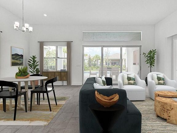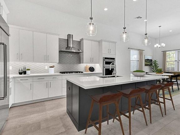 Step into the elegance of the Maya Contemporary a beautifully designed home that offers modern sophistication and everyday comfort. You'll be captivated by the lush, professionally landscaped yard, creating a serene and private outdoor setting complete with a sparkling pool and spacious covered lanai. Inside, the open-concept floor plan is enhanced by sleek porcelain tile flooring throughout, giving the home a seamless, elevated look. The designer kitchen features two-tone cabinetry, upgraded stainless steel appliances, a striking backsplash. The primary suite is a true retreat, showcasing a spacious layout, walk in closet, luxurious finishes, and a spa-inspired bathroom with dual vanities and an oversized walk-in shower.