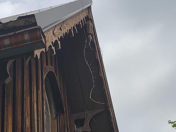 "BACK ON MARKET' Remediation work has been completed on house. All of the carpeting has been removed, walls and floor washed down, then primed Unique woodwork on eaves of house built in 1870 coupled with curved windows in several of bedrooms lend to the charm of this home. Exposed beams using mortice and tenon joints form the majority of the superstructure of this home. Good water test just recently completed.