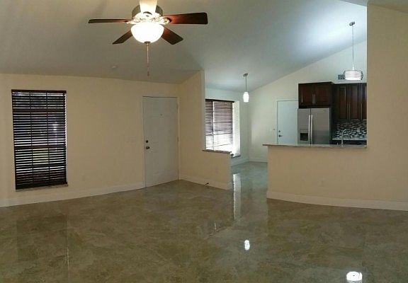 Immaculate updated home with 24 inch saturnia tile. New kitchen with stainless steel appliances, updated bathrooms fresh paint in and out this property is in move in condition. Large covered patio and huge yard with room for a pool! This home will not last. It is move in ready including new window covering and fully sodded and landscaped yard with irrigation system. Plenty of parking and lots of shade. Attention to detail with volume vaulted ceilings and modern finishes throughout.