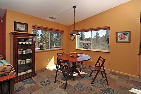 Terrific sunny location, end unit townhome, with a yard and fenced back patio within the Stonewood complex. Fun designer colors in this lovely 3 bedroom, 2 bath, 2 car garage with high ceilings and a great room. Master suite on main floor with two bedrooms and a bath on the first level. Stone fireplace in the great room for cozy winter evenings, a back deck surrounded by trees and close to downtown Truckee fun, Truckee Regional park for summer concerts, legacy trail, tennis courts and skate boarding park.