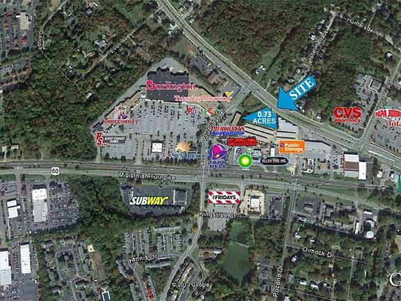 BID ON-LINE until May 27; price shown is reserve- guarantees to sell at or above $30,000 bid! Level lot in high traffic Midlothian/Robious corridor, near signalized intersection at Pocono Shopping Center. Re-zone for your use by calling Chesterfield Co Planning. Seller acquired in 1984 for cell tower site. Early offers presented.