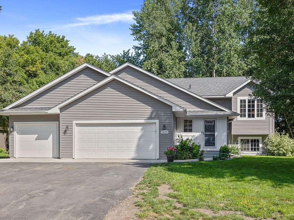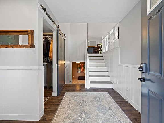 This adorable home is updated with a fantastic entryway addition you won't find in a typical split entry with an added walk-in closet. New carpet downstairs 2022, new flooring upstairs 2022, new backsplash in kitchen 2022. White trim was added throughout upstairs as well as updated painted kitchen cupboards 2022. SS appliances. Pantry was added off the kitchen for extra storage. Many rooms are freshly painted. Huge deck overlooking a hard-to-find private wooded backyard. 3 bedrooms on one level plus 4th bedroom or office in lower level. 3 car garage and small shed. Close to shopping and restaurants. STMA schools. This home is move-in ready. Don't miss out on this adorable updated gem!!