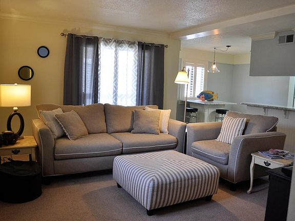 Beautiful 2 bed 2 bath unit in complex with no walls touching. Top floor walk up fully furnished in building closest to very lightly used pool. No smoking, no pets