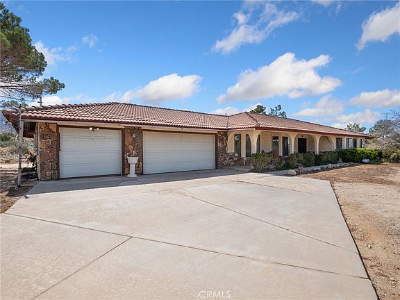 Well maintained ranch style home in the heart of Pinon Hills that's easily accessible to Hwy 138. Situated on 2.27 acres of natural beauty and views of the snow-capped Wrightwood mountains. Thoughtfully designed with both formal and informal living areas, lots of windows for natural light along with a large patio area to enjoy your surroundings. Chef ready kitchen with loads of counter workspace, breakfast bar and adjacent eating nook. Nice sized secondary bedrooms with window seats and share a conveniently located bath. Primary suite features a walk-in closet, en-suite bath with dual sinks and walk-in shower. Added home features are the in-house separate laundry room and the direct house access 3 car garage, the 3rd bay used as workshop with built-in cabinets and workbench and extra 1/2 bath. PAID solar and fiber optic internet access also! The lot features an array of natural desert flora and mature trees and shrubs. As an added bonus, there is a totally separate "cottage" or guest quarters with a full bath, living area and studio style kitchen. The possibilities are endless here--bring your desert toys, take a quick trip to the local ski-slopes or cool mountain air, or bring your horses and farm animals for your mini ranch.