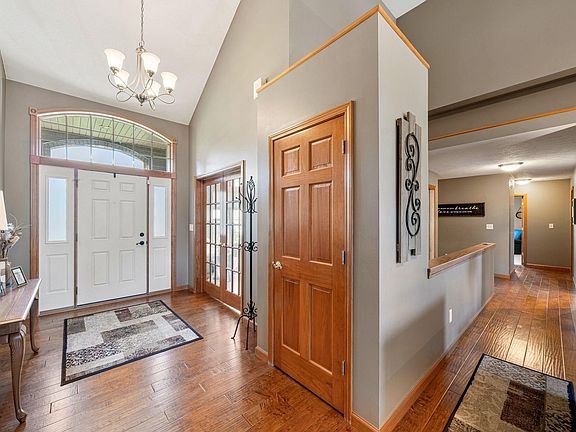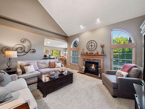 Discover the charm of this Northbrook Shores ranch with 4 bedrooms and 3.5 baths! Beautiful hardwood flooring spans the first floor, except for carpeted bedrooms and tiled baths and laundry. Enjoy a spacious great room with a gas fireplace, seamlessly connected to the kitchen featuring granite countertops, newer appliances, and a reverse osmosis drinking system. A screened porch provides views of the landscaped backyard and a pool with an automatic cover. The split floor plan offers a primary suite with a walk-in closet, dual sinks, and a jetted tub. Two bedrooms share a Jack-and-Jill bath. The finished lower level includes a family room with egress windows, a fourth bedroom, a third bath, a workout room, and a media room with 6 reclining chairs and acoustic panels. Close to shopping—don’t miss this exciting opportunity!