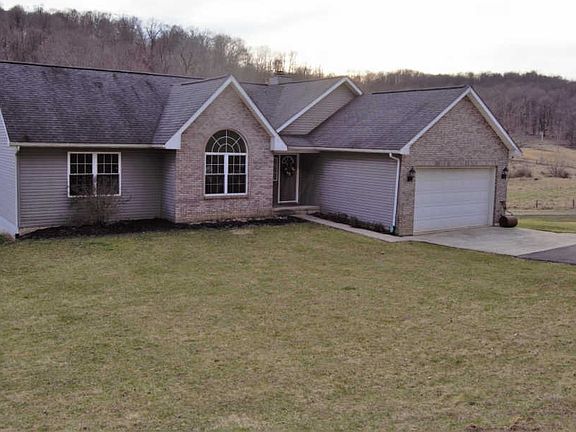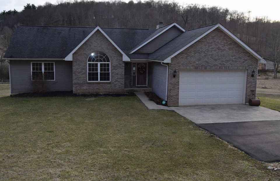 Mini farm (5.088A) with breath taking views within minutes of the North end of Newark. It is located in Licking Valley School.s. Great room has Open concept with cathedral ceiling. There is plenty of storage in this awesome 3 BR/2BA home. The Kitchen has one of a kind tile floors with a large pantry and 2 other closets. En suite bedroom has walk-in closet and bath has shower and garden tub. Full unfinished walkout basement is plumbed for an additional bath.20 x 30 pole barn with large fenced in area.
