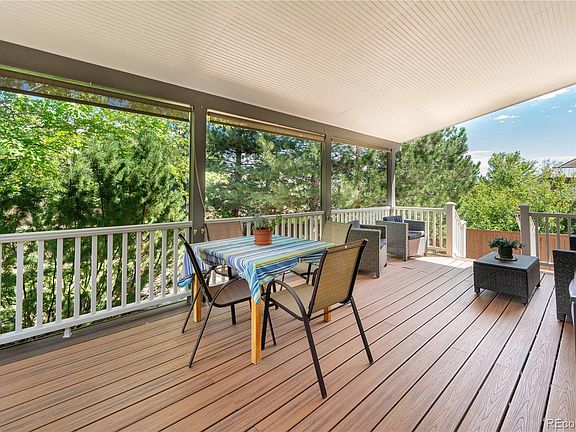 Stunning Ranch nestled in one of Highlands Ranch desirable neighborhoods, Eastridge Point. Situated on a quiet Cul-de-Sac on a Corner site & just a Short walk to Trails & Open Space. Gorgeous Home offers 4 Beds, 3 Baths, a partially Finished Basement & an Attached 3 Car Garage. Nice Curb Appeal welcomes you to this Beautiful Home combining classic style & timeless Elegance boasting a Wonderful Open Floorplan, High Ceilings & Abundant Natural Light. Spacious & Sunlit Great Room offers a Wall of Windows, Stacked Stone Gas Fireplace perfect for those chilly evenings, Gleaming Hardwood Flooring & is open to the Informal Dining Room & Large Kitchen. Bright Upgraded Gourmet Kitchen offers Quartz Countertops, Loads of Cabinet Storage Space plus a Pantry. There's an Island & a separate long Breakfast Bar w lots of Seating space perfect for Entertaining. Step outside & enjoy the Huge Covered composite Deck, Flagstone Patio & low maintenance Fenced Backyard w Large Mature Trees providing Privacy; all Ideal outdoor spaces for Relaxing & Entertaining. Lovely Main level Primary Suite has Wood Flooring, is enhanced with Crown Molding, Ceiling Fan, Walk-in Closet. Luxurious Upgraded 5-Piece Bath has a Soaking Tub, Walk-in Spa Shower, Double Vanities, Water Closet & Tile Flooring. Main level includes an Office with a Closet that also works as a Bedroom, a 3rd Bed & 3/4 Bath w Double Vanities. Great additional living space downstairs in the Expansive Family Room with a Wet Bar. There's also a 4th Bed with an en Suite 3/4 Bath. Main Level Laundry Room has Utility Sink, Counter, Cabinetry & Garage access. Enjoy A/C, Ceiling Fans, Art Niches, Plantation Shutters. Plenty of Space for Expansion & Storage Space in the 499 SqFt area of the unfinished basement. Convenient Location! Just a few Steps to Trails/Open Space. Highlands Ranch maintains 4 Rec centers w Pools, Work-out facilities, Meeting/Event rooms & Sports courts. Close to Shopping, Dining, Schools & Parks. See Virtual 3-D Tour.