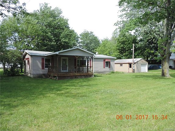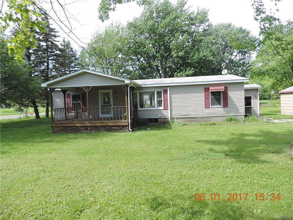 ***POSSIBLE SELLER FINANCING*** <> This property sits on an attractive corner lot to the west of Lyndonville. This (modular) ranch style dwelling is in generally good condition and features a spacious living room, dining room, kitchen, laundry room, two bedrooms and another room that could be used as a den, office or third bedroom if needed. The property also has a covered front porch, an enclosed side/back porch and a detached one car garage. All information is approximate. This property is being sold in as is condition.