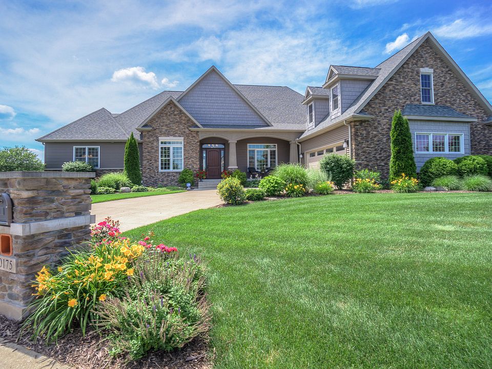 Custom built home in desirable Northbrook Shores. Large lake lot surrounded with beautiful perennial landscaping. This home is wonderful for entertaining. Enter into an open great room with 15 ft coffered ceiling, large crown moulding , and beautiful views of the back patio and lake. Kitchen is open to great room and eating area that flows into additional living space in the sunroom. Master bedroom is generous in size with a cozy sitting area to enjoy a cup of coffee or a book. Three additional bedrooms each have en suite bathrooms and walk in closets. Bonus room above garage has over 1000 sq ft of space to watch a movie, have a great play area or a perfect hangout for teens. Additional half bath on this level. Oversized 4 car garage is insulated and heated with a separate 100 amp electrical panel and built in storage cabinets. Enjoy relaxing or entertaining on the covered back patio that steps down to a very generous concrete patio area. Fun abounds with an in-ground pool, pergola with a firepit and plenty of seating space to host a large party - We Love It! You won't be disappointed with this beautiful friendly neighborhood with fantastic PHM schools.
