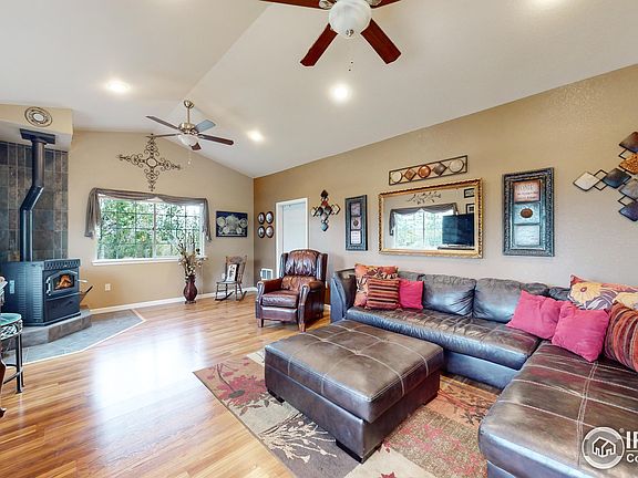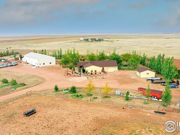 TURN KEY Ranch on 35 acres w/huge outbuilding & MOUNTAIN Views! Enjoy Colorado living & spectacular sunsets on your covered front porch. Updated home features 4br/4ba w/fin bsmt. Zoned Ag, the options abound! 35'x22' 4 stall barn w/loafing sheds & tons of trees. Several pastures. Bring the livestock- horses, donkey, goats & chicken coop! 46'x35' Outbuilding w/cement flr &14'x16' door plus 2 car attached & 2 car detached gar. Backyard oasis w/gardens, firepit & private patio. These rarely come up!