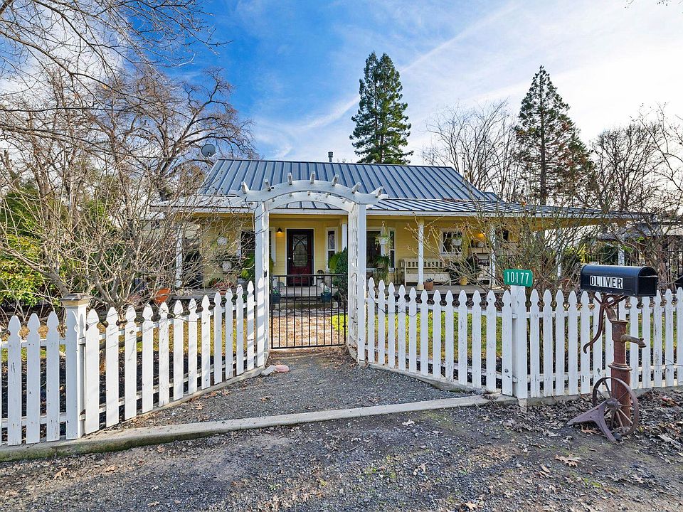 Step back in time with this truly special Jamestown property, part of the original Pulpit Rock Farm dating to the 1800s, where historic character meets modern comfort. Set on approximately 2.35 acres, the land is bordered by Woods Creek and seasonal Peppermint Creek, offering a peaceful Creekside setting rich in Sierra Foothills history. A charming storybook-style entry welcomes you to the custom home built in 2007, featuring an inviting covered porch ideal for year-round enjoyment. Inside, vaulted ceilings, oversized encased windows with deep sills, and abundant natural light create a warm, open atmosphere. The living space is anchored by a stone propane fireplace with custom mantel, complemented by tile and quartz finishes, tile flooring in main living areas, and LVP flooring in bedrooms. Additional features include recessed LED lighting, Hardy Plank siding and metal roof. An authentic historic wood barn with second level, detached two-car garage, large usable upper pad, and expansive parking area add exceptional functionality. Outdoor highlights include mature landscaping, a fully fenced productive garden with raised beds, producing fruit trees, and a greenhouse approximately 70% complete. Zoned multi-family with potential for future expansion (buyer to verify)