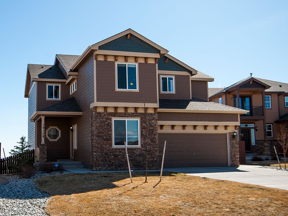 This gorgeous, private and quiet home in Meridian Ranch backs to open space and has a view of the front range! Main level has a large family room, wonderful kitchen with granite counters, upgraded appliances, breakfast bar and pantry! Dining area walks out to composite deck and private views! Office on the main level allows for business or home office! Upstairs has a loft sitting area, huge master with fire place, sitting area and five piece bath! Large laundry with cabinets and window make laundry day easy! **EXTRAS: Upgraded S/S gas stove, refrigerator, washer dryer ceramic tile & wood flooring, central A/C, extensive concrete patio w/sports court, firepit, play set, raised garden, auto sprinklers, blinds, fully fenced, radon system, most curtains, garage shelves.