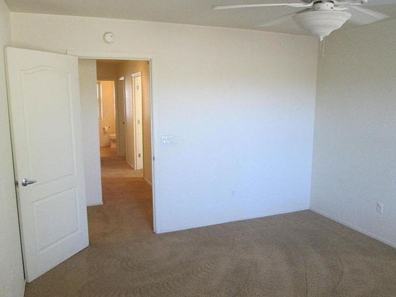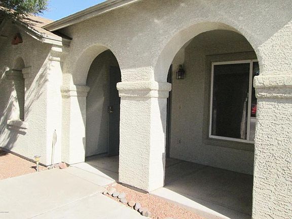 Clean & move in ready 3/2 starter home on a N/S facing lot w/distant but awesome mtn views. Front decorative metal security dr just inside dual-arched front cvrd patio opens to lrge, bright living rm w/plush clean carpet. Lrge open kitchen flush w/cabinets w/pullouts, integrate w/a gas stove w/hood, lrge refrigerator, dishwasher, W&D-gas avail (all convey). Upgrd steel sink & faucet fixture. Elevated kitchen bar extends length of kitchen & perfect gathering point. Spacious clean mstr bdrm w/2 view windows, lrge shower & single sink w/lrge walk-in closet. Remaining 2 bdrms are spacious & hallway bath is full-size. Fans in all rms. Beautiful pool-sized low-care bckyrd w/desert lndscpe & mtn views. Conveniently located near all essential services and I-10! Tenant pays all utilities
