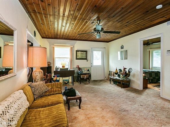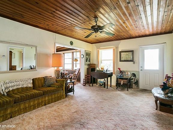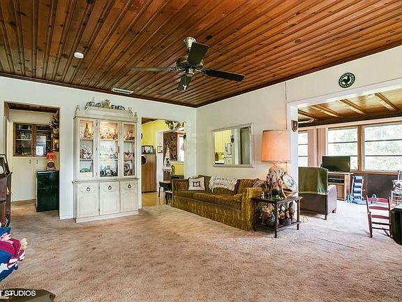 Cozy ranch situated on half an acre! Home is set back far from road and features a circular driveway. Plenty of space to expand! Home currently features 2 bedrooms, 1 bathroom, wood ceilings, outdoor shed/storage and tons of privacy with mature trees, fruit trees and landscaping. Prime opportunity on this huge lot! Sold as-is.