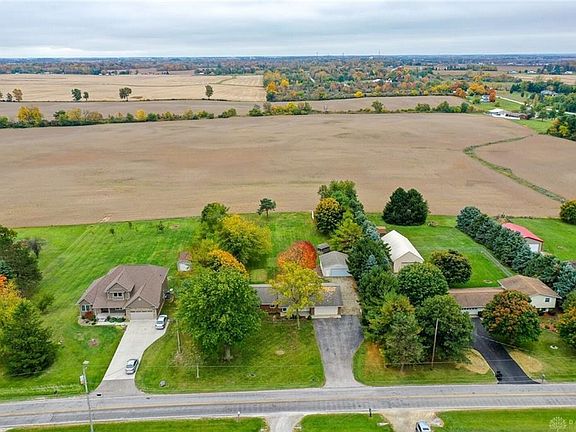 Lovely brick ranch nestled in a peaceful country setting has much to offer! Mature trees, wide driveway, and a private lot that backs up to a field. Updated to add a 4th bedroom (or could be used as an office), this home has 2 full baths, a 2 car attached garage, and an additional 2.5 car detached garage with electric, offering possibilities for a workshop or other bonus recreational space. $36,000 kitchen remodel completed in 2018 is a hallmark feature: gorgeous granite countertops, marble backsplash, new cabinetry, can lighting, new flooring, and stainless steel appliances. The outstretched land in the back of the property is an idyllic setting for quiet family living and/or outdoor gatherings. Two additional sheds, one "log cabin style" offer ample storage space. Roof on the house and detached garage is 7-8 years old. Quality 6 panel doors throughout the home. This home is centrally located and is near Springfield, Buck Creek and only 35 minutes from either Columbus or Dayton.