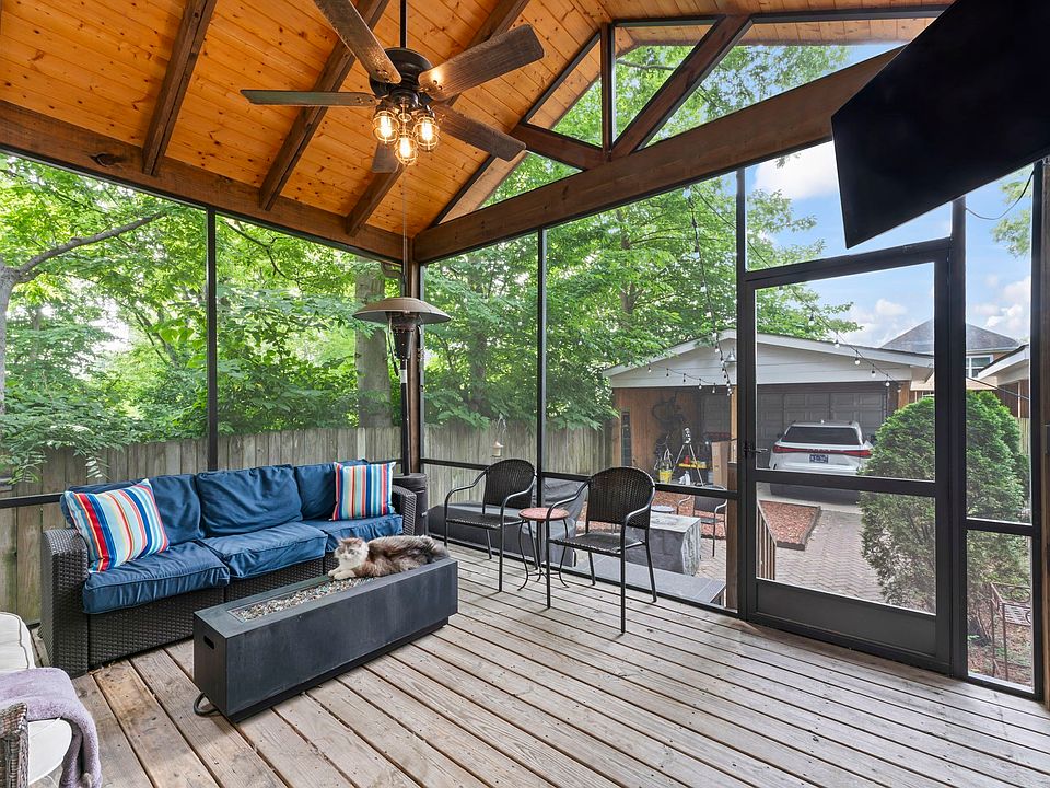 Inside, the open-concept main floor is filled with natural light and features a flexible bonus room—perfect for a home office, guest space, or 4th bedroom. The kitchen is equipped with ample storage and stainless steel appliances. One of the home's highlights is the newly added screened-in porch—ideal for sipping your morning coffee, relaxing with a book, or watching the game with friends. Upstairs, the extra-large primary suite includes vaulted ceilings, natural light, and a bath featuring an oversized walk-in shower. Enjoy the detached garage, manageable fenced-in yard, and low-maintenance living that gives you more time to enjoy everything this location has to offer.