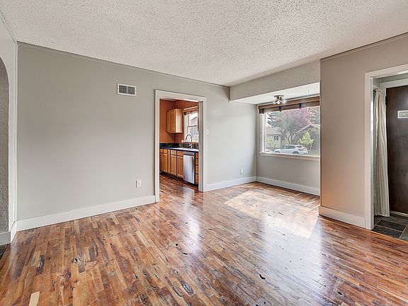 The larger home is a spacious & functional 1230 sq ft that includes knotty hardwood floors in the living room, kitchen, and breakfast nook, tiled laundry and bath, and 2 bedrooms with new paint and carpet all on the main floor. Plus, there is a large bonus room or third bedroom on the second floor with exposed brick and multiple built-ins, storage, and a/c!