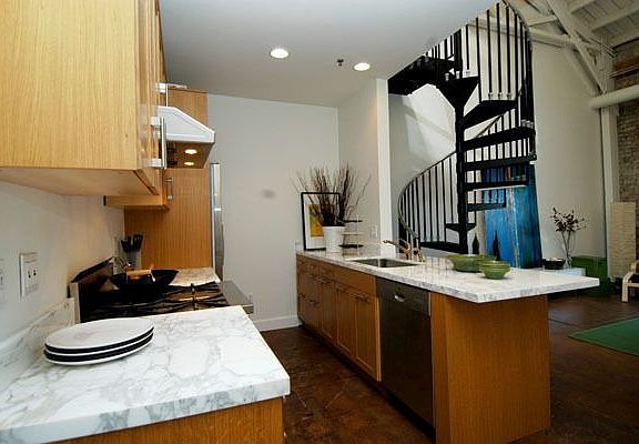East Lake Lofts -- Real-deal steel-frame brick Live/Work lofts near Lake Merritt & Jack London Square. Get soaring ceilings, a new kitchen & 2 new tiled baths, plus walls of windows for a Manhattan-loft feeling. Private stacked Washer/Dryer in the condo. The building is close to great dining, and just 6 blocks to BART. (Additional cost for deeded parking.) Open Sun from 2-5 p.m. Loft 117.