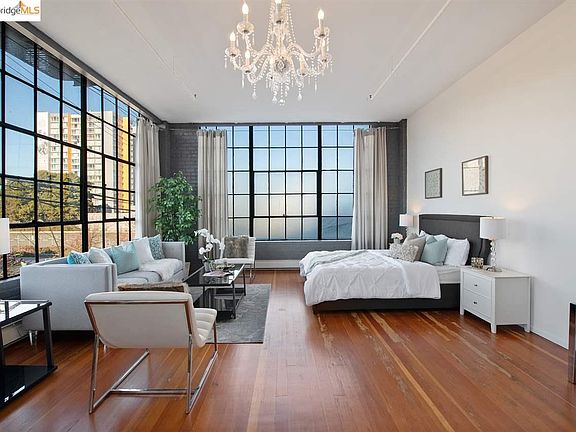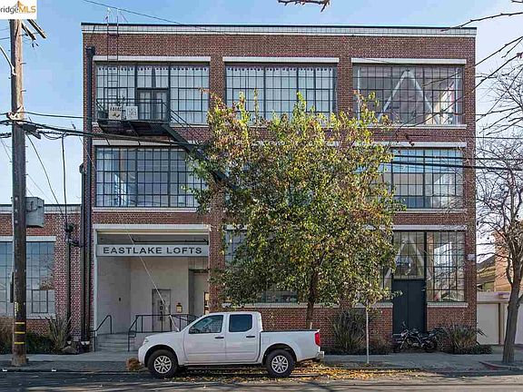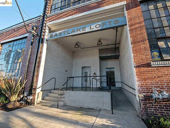 East Lake Lofts is a steel reinforced brick and mortar warehouse - with loft-style residences. Loft 201 features a large and open floor plan. There are many true loft elements. The walls are of exposed brick and riveted steel beams. There are large warehouse windows, and exposed trusses, ductwork, piping, and track lighting. The floors are a refinished Douglas fir which saturates the space with warmth. The natural timber ties together the unit providing continuity from wall-to-wall. The loft is on the second floor close to the stairs at the front of the building. There are double patio doors that open to an exclusive use balcony. Deeded parking space #22 is close to the open air vintage freight style lift. There is a community patio and grill in the back. East Lake Lofts offers convenient access to Downtown Oakland, Jack London Square, Uptown, Grand Lake and Alameda.