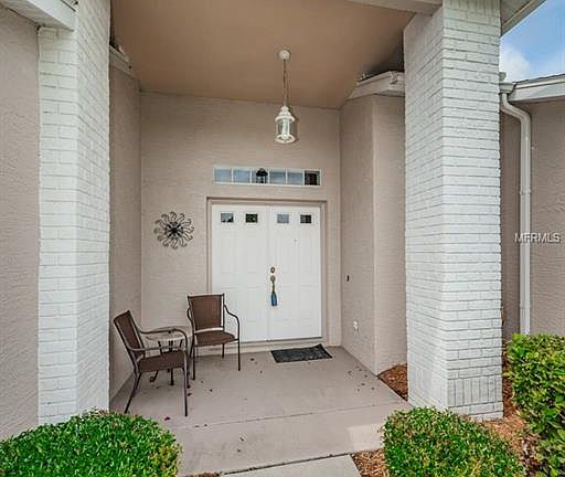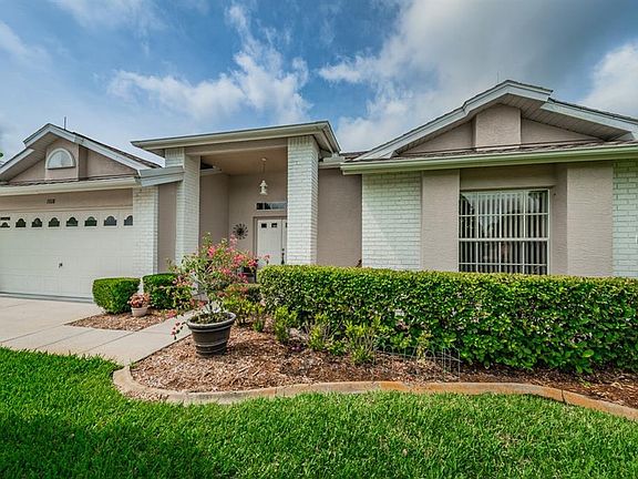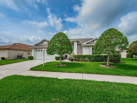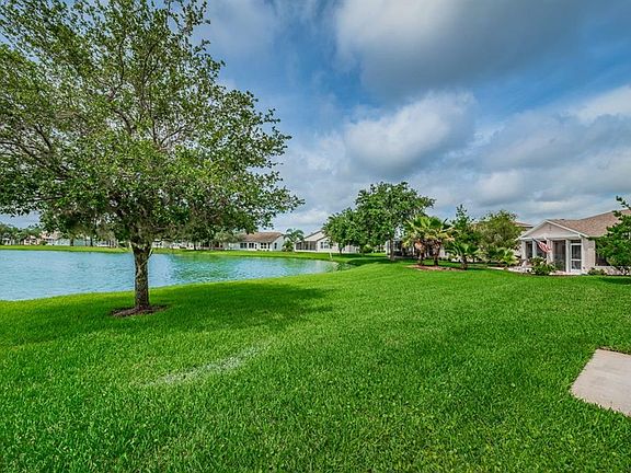 An outstanding view, an outstanding opportunity! A spacious backyard with patio and 65 feet of frontage on the lake. This home features a newer roof, an open Great Room floor plan with plant shelves, and the additional space of a bonus glassed-in Florida Room. The kitchen has wood cabinets, a fully vented microwave, a deluxe water filtration system, a pocket door entrance to the laundry room, and laminate wood flooring which also extends to the breakfast nook with its bay window. The large master bedroom includes two air conditioned walk-in closets and a built-in wall unit with desk and shelves. The master bath contains wood cabinets, corian counter, a stall shower AND also a jacuzzi style jetted tub. The guest bedroom has its own large walk-in closet with A/C, and the handy laundry room has storage cabinets and a work sink besides the washer & dryer. Other home features include a new water softener, lightening rods, gutters, and a 50 gallon water heater. Enjoy all of this and enjoy Heritage Springs which is Trinity's premium 55+ gated golf community. The heated pool and spa adjoin a fabulous clubhouse with restaurant, lounge, performing arts center, crafts room, library, card room, and more. There's also a fitness center, tennis courts, bocce, and of course the 18 hole championship golf course. See "Tour 1" (near upper left corner) for additional photos.